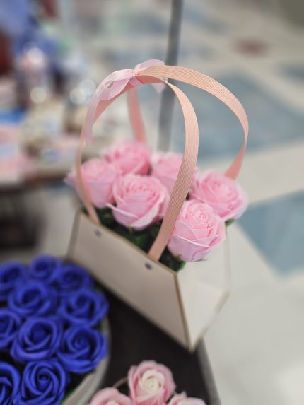 Soap flowers σε τσαντακι ροζ
